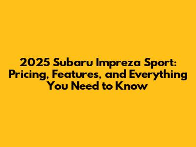 2025 Subaru Impreza Sport: Price, Features & What To Expect