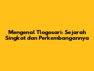 Mengenal Tlogosari: Sejarah Singkat dan Perkembangannya