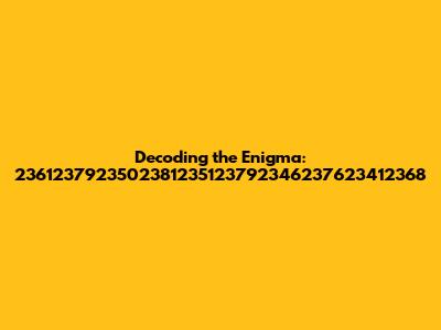 Let's dive deep into the mysterious world of seemingly random numerical sequences! Today, we're tackling the beast that is 2361237923502381235123792346237623412368. What could this possibly mean? Is it a secret code? A product number? A random string of digits someone mashed on their keyboard? Well, grab your detective hats, guys, because we’re going to explore some possibilities and try to make sense of the nonsense... or maybe just appreciate the absurdity of it all. Buckle up; this is going to be a wild ride!