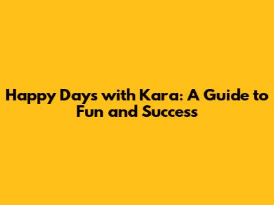 Hey guys! Ever wonder how some people just seem to breeze through life, always with a smile and a skip in their step? Well, a big part of it comes down to cultivating "happy days," and guess what? We're going to dive deep into exactly how you can do that, especially with a little help from our guide with Kara!