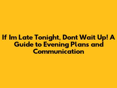 Hey folks! Ever been in a situation where you're running late, and you're not sure if you should be expected? Or maybe you're the one waiting around, wondering if your friend, partner, or family member will ever show up? The phrase "If I'm late this evening, don't wait for me" is a classic for a reason. It's about setting expectations and respecting each other's time. Let's break down why this simple phrase is so effective and how you can use it to navigate your own evening plans.