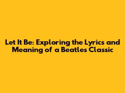 Hey music lovers! Today, we're diving deep into one of the most iconic songs of all time: "Let It Be" by The Beatles. This song isn't just a tune; it's a feeling, a message of hope, and a source of comfort for many. We're going to break down the lyrics, explore their meaning, and even check out some translations. So, grab your headphones, get comfy, and let's unravel the magic of "Let It Be."