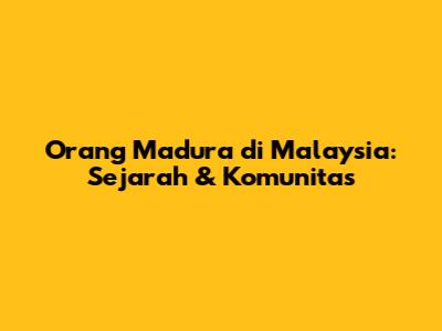 Orang Madura Di Malaysia: Sejarah & Komunitas