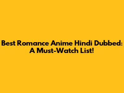 Top Romance Anime Hindi Dubbed: A Must-Watch List!